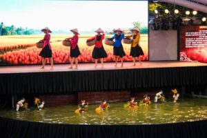 The show portrays village life, farming scenes, folklore, and mythical legends symbolising Vietnam’s patriotism. ‘Thánh Gióng’, about a young boy who grows into a giant hero and rides a flying iron horse to defeat invaders, and the ‘Emperor Lê Lợi’s and the Magical Sword’, involving the gods granting Le Loi a magical sword to liberate Vietnam, are among the show’s highlights.