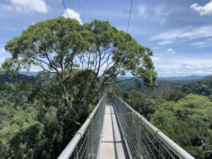 a walkway high in the canopy of the rainforest in Ulu Temburong National Park, Brunei’s first national park.