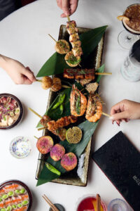 Upstairs at Zoku, local musicians now accompany a spread of contemporary Japanese highlights. The brunch menu begins with ‘Otoshi: The Izakaya way’ comprising snacks before the ‘Irasshaimase’ assorted sashimi platter showcasing premium seasonal fish and seafood. Main course options include grilled yellowtail collar, US prime beef ribeye steak, ‘Robusutā Tsukemen’ lobster tail and A4 Miyazaki Wagyu. Desserts such as white chocolate and matcha puffs round out the brunch.
