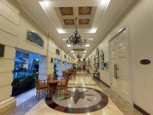 L’esperienza culinaria prosegue poi nei vari punti di ristoro dell’hotel, dove la qualità del cibo si intreccia con l’atmosfera suggestiva del cortile. Il Paprika Restaurant, è il luogo ideale per un pranzo conviviale o una cena intima, proponendo una fusione di sapori che celebra l’incontro tra la cucina cinese, indonesiana e internazionale. Per chi preferisce un momento più raccolto, il Vino Bar offre l’eleganza di un club d’altri tempi con ottimi cocktail e musica dal vivo, mentre il Terrace Lounge, affacciato su un cortile al centro del quale c’ è una fontana, è il posto perfetto per sorseggiare un drink in totale relax e per una cena informale. Particolarmente apprezzata è la serata dedicata al BBQ, un appuntamento che trasforma il cortile in una festa per i sensi con chef che cucinano dal vivo, diffondendo nell’aria il profumo delle griglie e delle spezie, creando un momento di condivisione amato sia dai viaggiatori che dai residenti locali.
