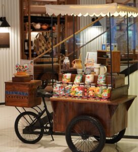 The chocolate-laden cart is permanently stationed at the entrance of the hotel’s all-day dining restaurant Laan Na Kitchen. Its eclectic selection of dark chocolate varieties range from ‘Hill Coffee and Pomelo’ and ‘Thai Bullet Chili’ to ‘Tom Kha Coconut Curry’. In addition to milk chocolate bars such as ‘Durian’, ‘Orange Cranberry and Almond’, ‘Banana’ and ‘Masala Chai’, the cart also offers ‘Pumpkin Pie’ white chocolate.