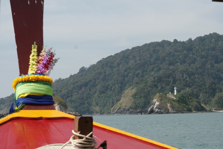 At 9am we exited the mangroves canals and the sun started to get stronger; the sky was a nice shade of blue. The boat cruised along Koh Por island with its nice bays and a picturesque fisherman village, passed Lanta’s southernmost point, then a few islands: Koh Ngai, where several boats discharged sunbathers; Koh Ma and Koh Chuak, well-known diving and snorkeling sites; Koh Kradan and Koh Mook, the most popular islands in the Trang province, part of Had Chao Mai National Park.