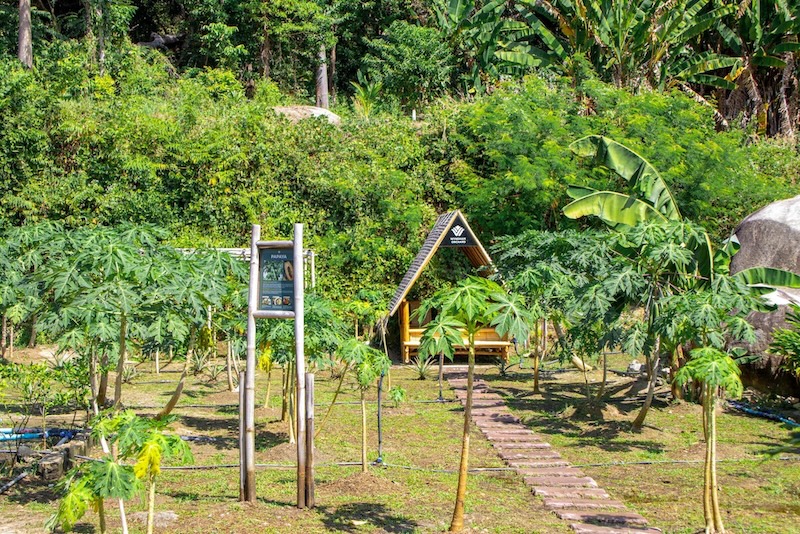 Spanning 6,000 square metres, the resort’s organic orchard produces a wide variety of fruits such as pineapples, bananas, papayas, and passionfruit, alongside herbs and spices including lime, lemongrass, ginger, turmeric, and citronella. Organic chickens provide farm-fresh eggs, while food scraps are composted and returned to the soil, nourishing the orchard and herb garden and completing the sustainability loop.